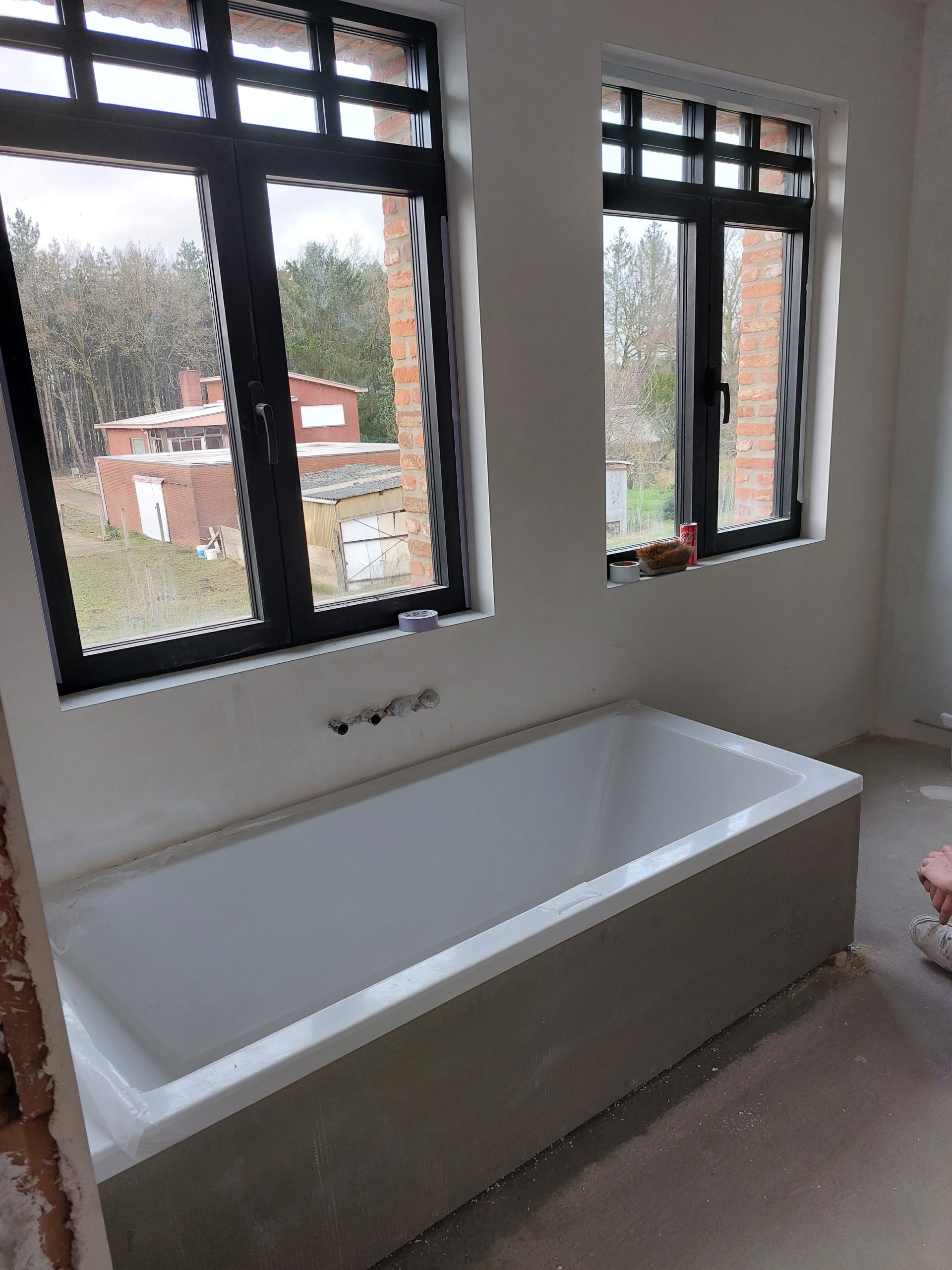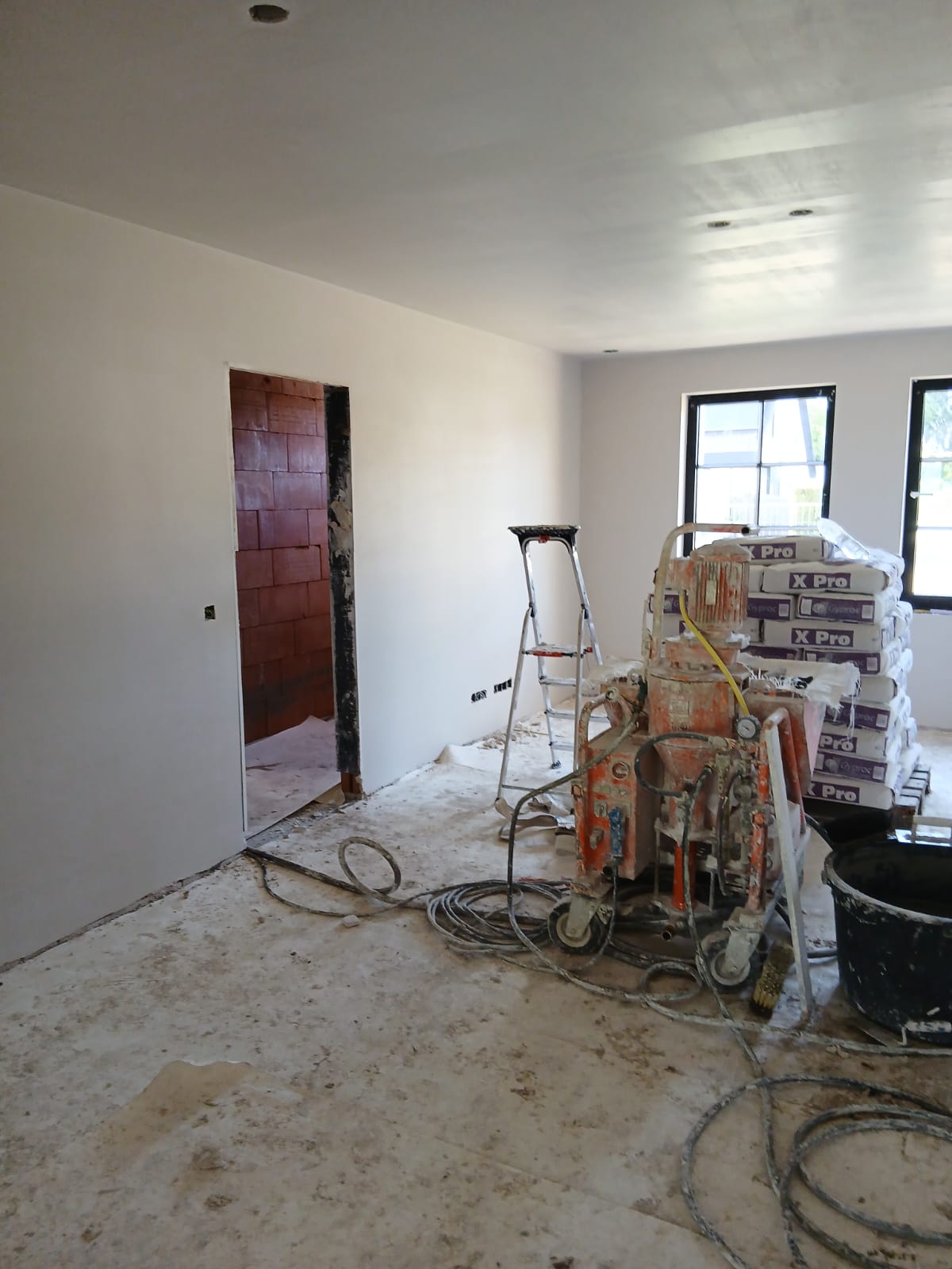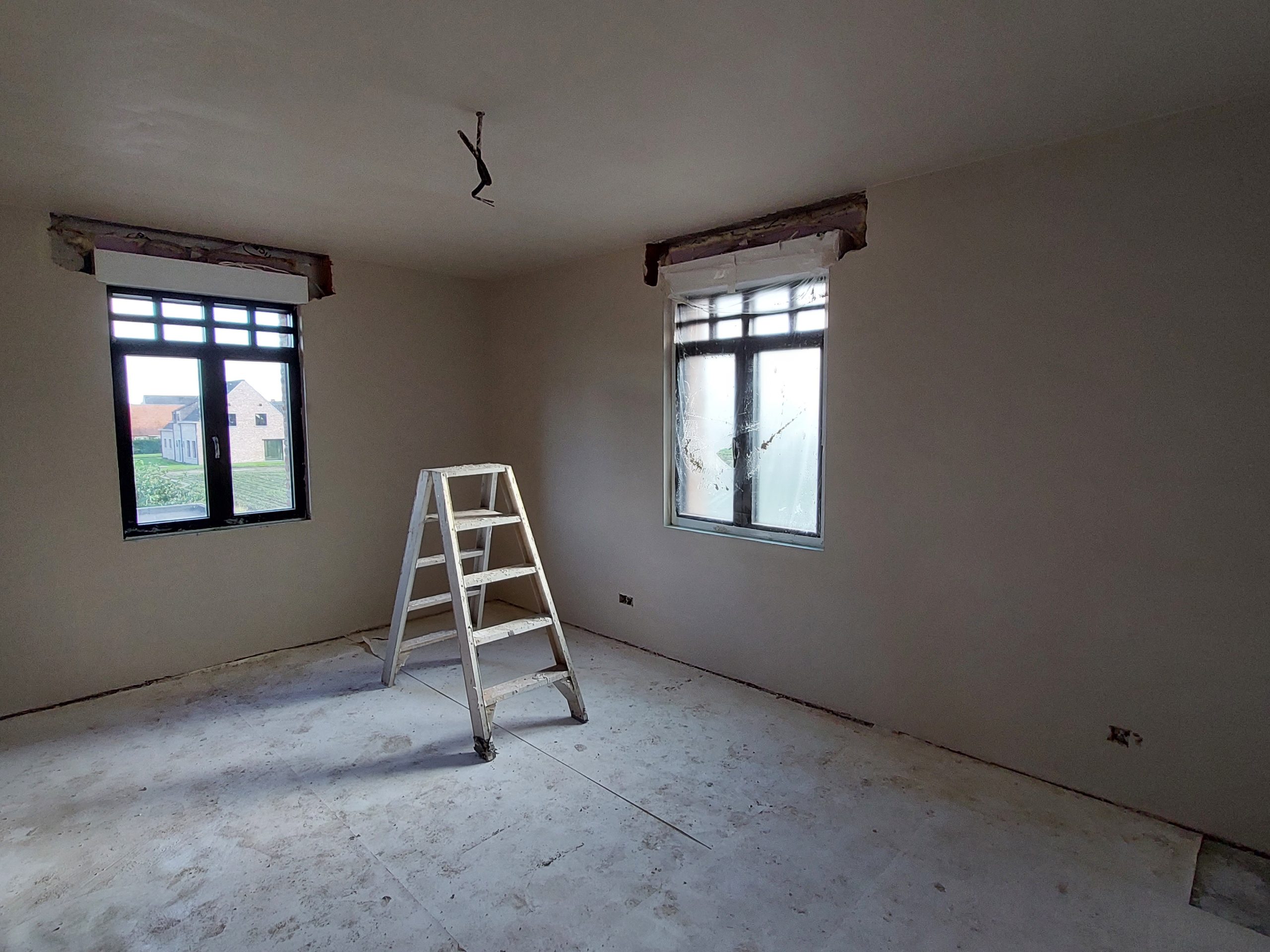 In deze galerij ziet u enkele foto’s van de bezettingswerken: van voorbereiding tot afwerking. Het zorgvuldig afplakken en beschermen van vloeren en ramen is zeer belangrijk. Het precies aflopen van de hoeken zorgt voor een strak eindresultaat. Elke stap toont onze aandacht voor detail en een perfecte egale afwerking.