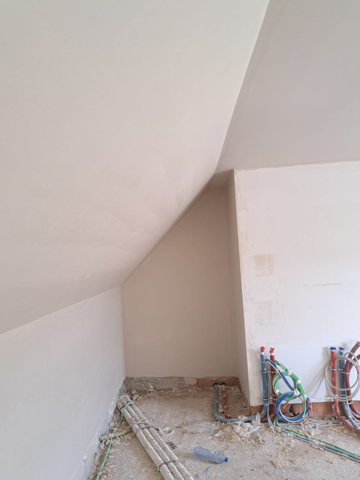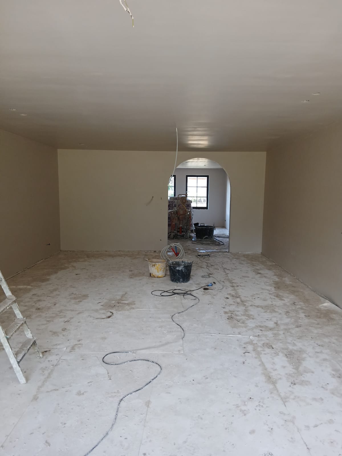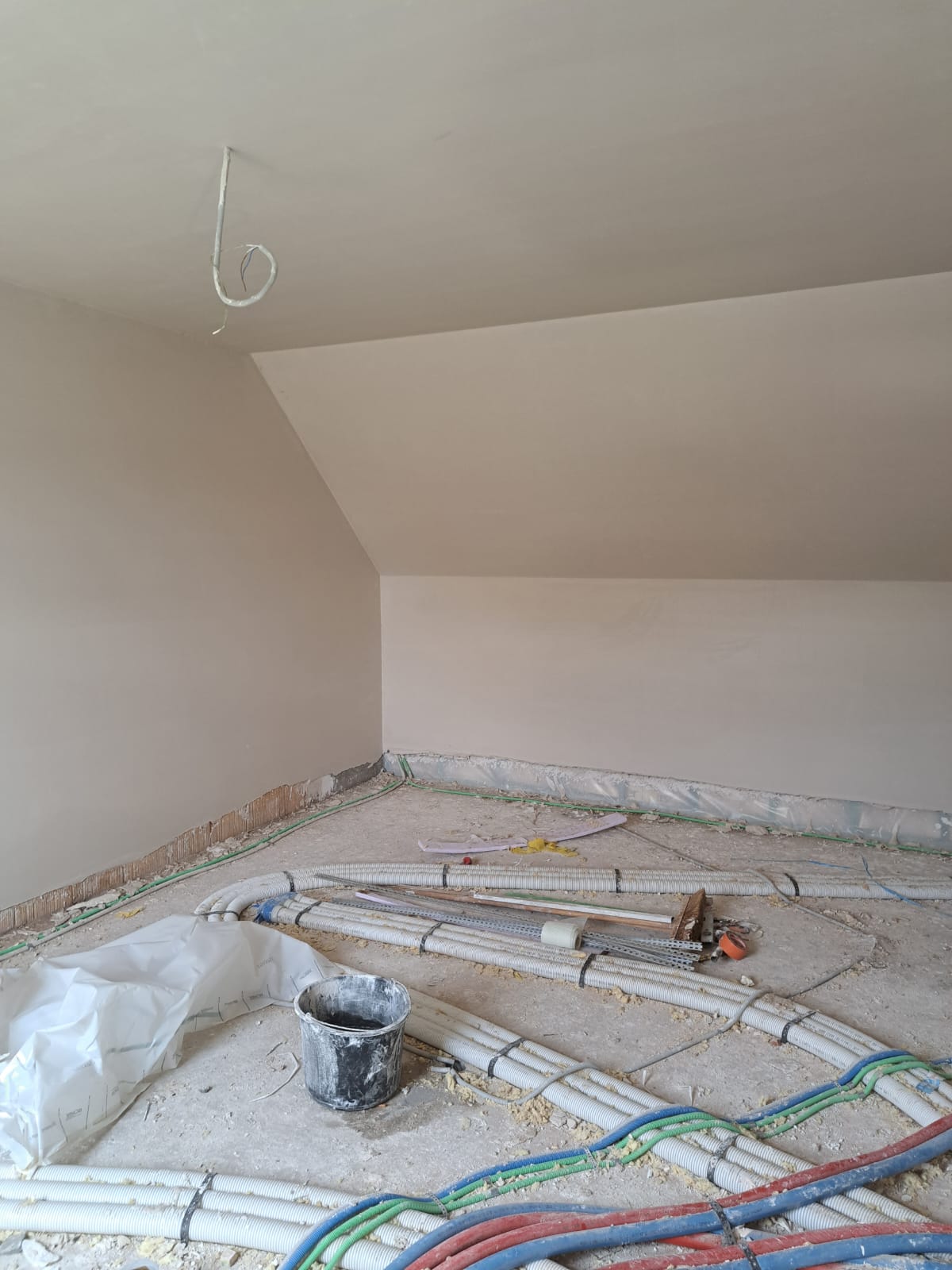 In deze galerij ziet u enkele foto’s van de bezettingswerken: van voorbereiding tot afwerking. Het zorgvuldig afplakken en beschermen van vloeren en ramen is zeer belangrijk. Het precies aflopen van de hoeken zorgt voor een strak eindresultaat. Elke stap toont onze aandacht voor detail en een perfecte egale afwerking.
